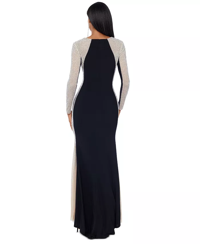 Дизайн с цветными блоками придает этому великолепно украшенному платью от XSCAPE изысканный вид.