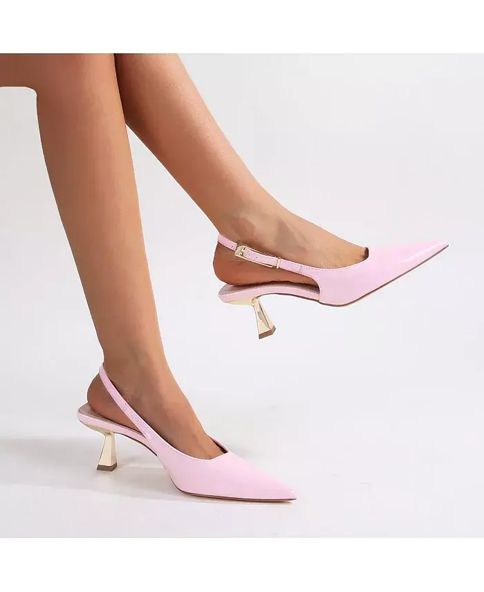 Cassandra Slingbacks имеют гладкий силуэт с острым носком и глянцевую лакированную отделку. Металлический скульптурный каблук-рюмка добавляет винтажный штрих, а регулируемый ремешок-ремешок обеспечивает удобную и надежную посадку.