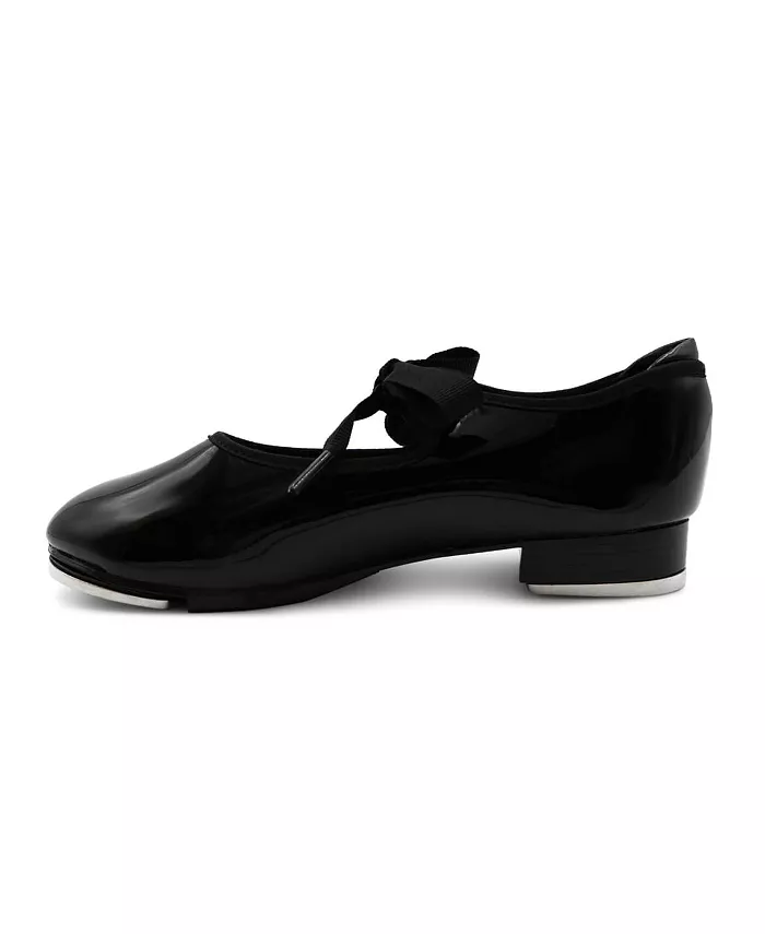 Познакомьтесь с нашей новейшей обувью для степа для начинающих! Shuffle Tap поставляется в блестящей черной лакированной коже, карамельной коже или белой коже. Очаровательная завязка на ленте и двойная застежка-резинка обеспечат максимально надежную посадку. Имеет фирменные накладки Capezio Tele-Tone на носке и пятке, установленные на ДВП для безупречного звука. Начинающие степеры сделают свои первые шаги с уверенностью в Shuffle Tap.