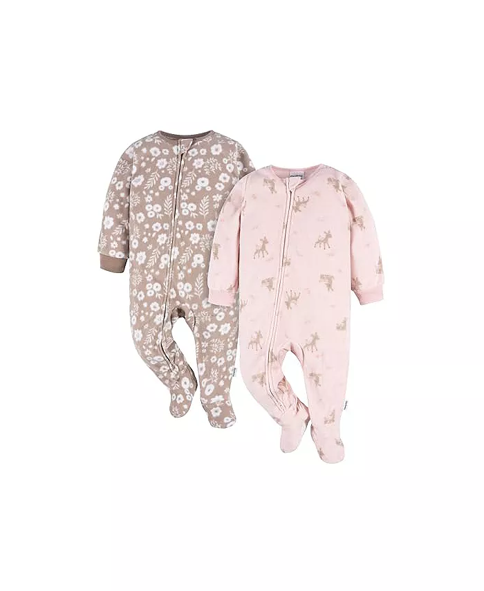 Пижама-комбинезон с ножками для девочек, 2 шт Gerber, розовый