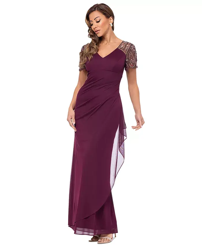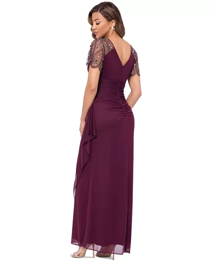 Блестящие рукава и продуманно драпированный шифон создают это великолепное вечернее платье от XSCAPE, идеальный стиль для особого случая.
