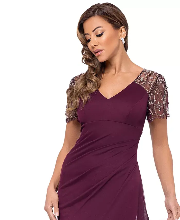 Платье с вышитыми бисером рукавами XSCAPE, фиолетовый