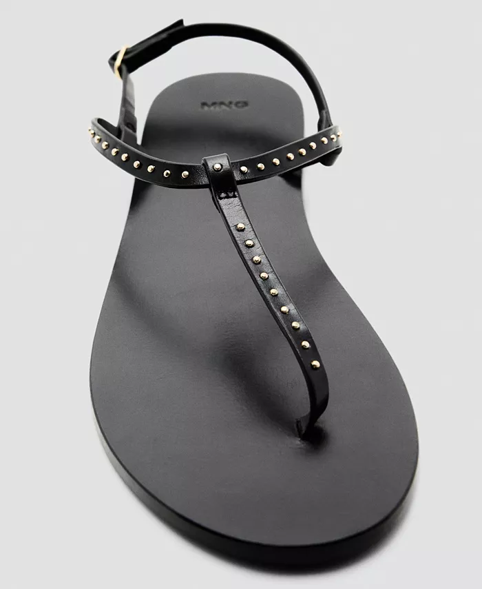 Каждая деталь добавляет эффектности в кожаные сандалии с мини-шипами от Mango. Эти плоские сандалии имеют дизайн с ремешком и детализированные мини-шипами.
