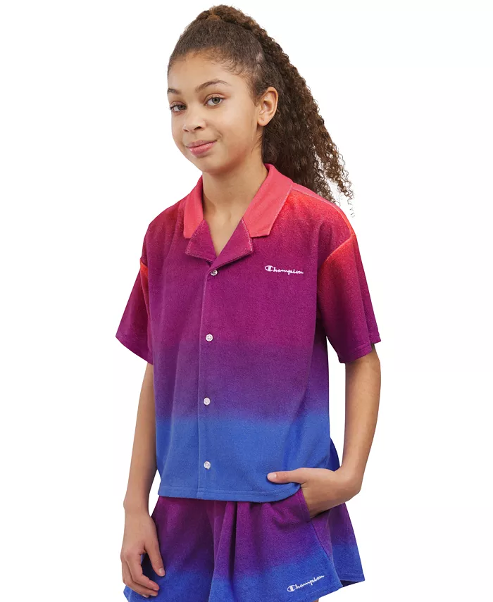 Эта рубашка Champion не только имеет пуговицы спереди и свободный силуэт, но и выполнена из красочного градиента и мягкой на ощупь махровой ткани. Сочетайте ее с подходящими махровыми шортами для идеального образа для отдыха.