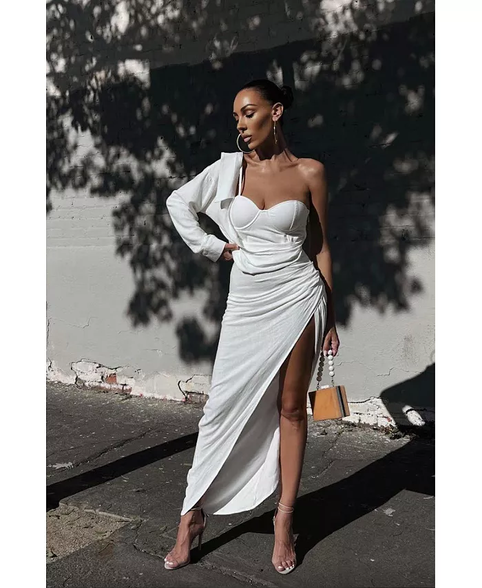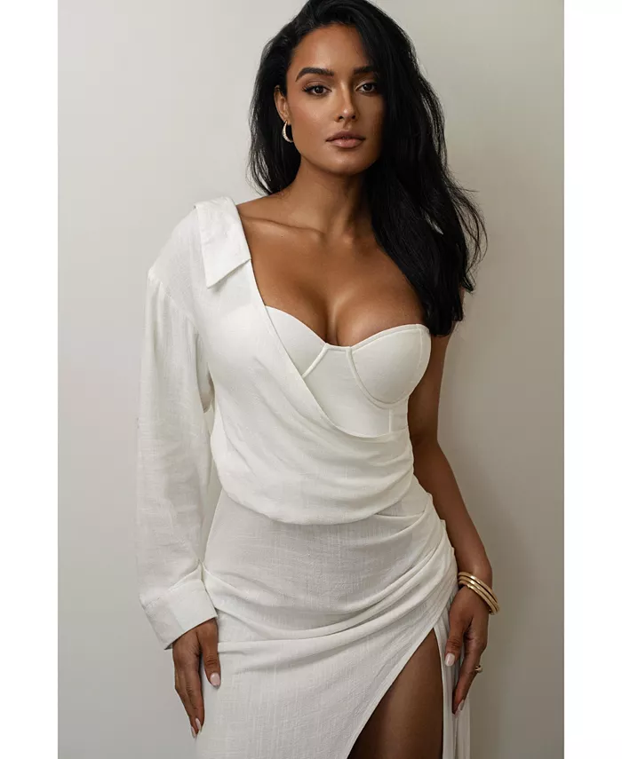 ЭКСКЛЮЗИВНО СОЗДАНО НАМИ ДЛЯ ВАС. Изготовленное из смеси хлопка и льна, наше ПЛАТЬЕ EVITA LINEN DRAPED настолько привлекательно, что вы захотите его в любом оттенке! Это платье-бюстье с рукавом на одно плечо и полуворотником, с подкладкой на бюсте, лифом на косточках для поддерживающей посадки и манжетами с закругленными хлястиками. Великолепная драпированная деталь украшает нижнюю часть талии, подчеркивая боковой разрез. Скрытая молния сбоку для застежки.