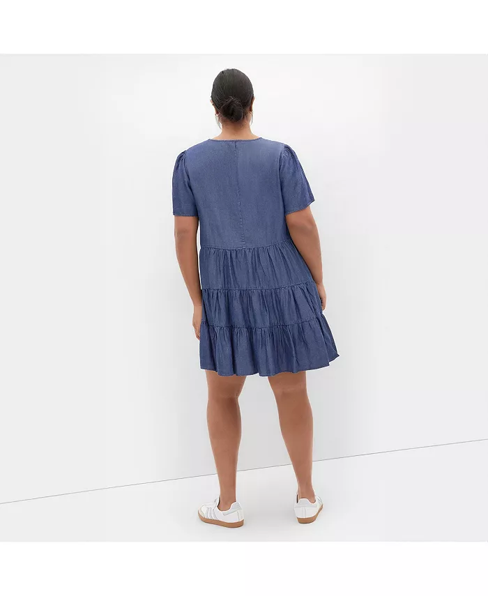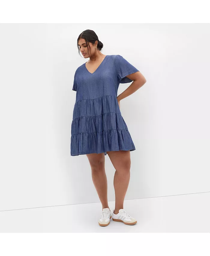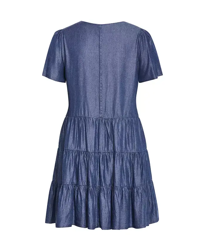Платье джинсовое многоярусное Plus Size CITY CHIC, синий