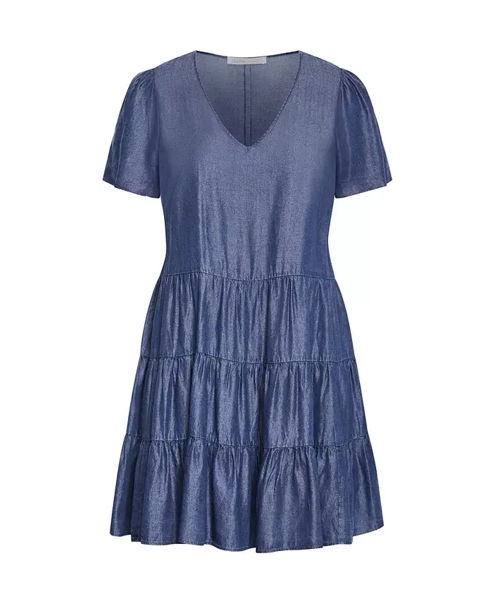 Приветствуем платье Denim Tier Dress с его привлекательным V-образным вырезом и свободным стилем, обещающим как шикарный городской образ, так и удобную посадку. Его короткий подол и вневременной дизайн создают восхитительные изгибы, что делает его практичным и забавным выбором для повседневной носки.