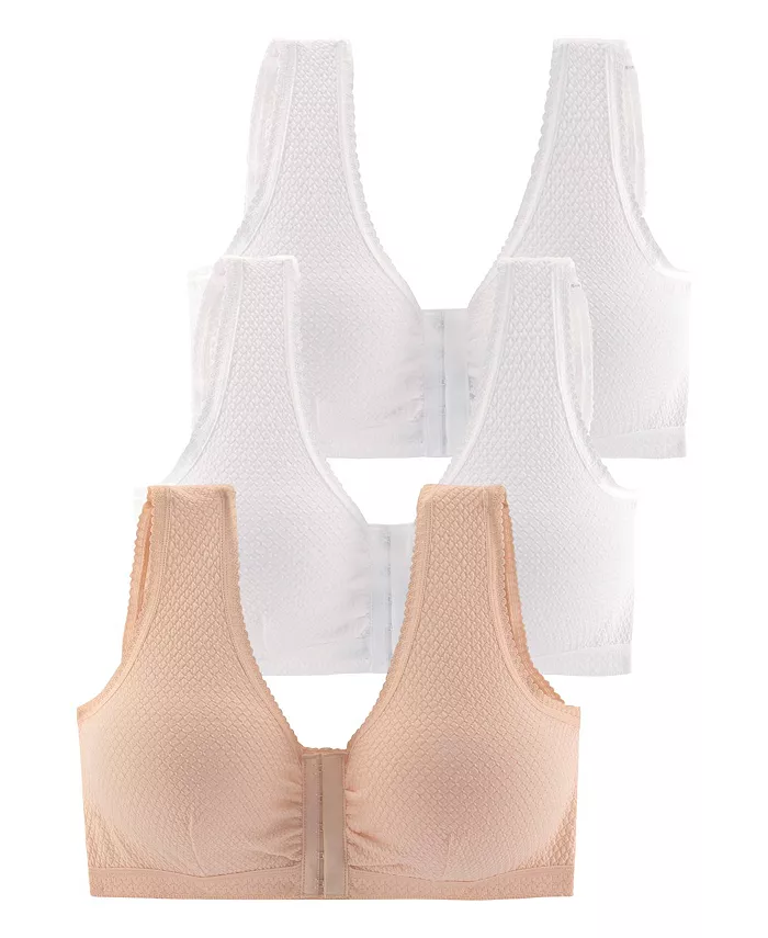 Эти бюстгальтеры предназначены для поддержки в течение всего дня без ущерба для комфорта. Подходит для чашек B, C и D Без подкладки Беспроводная Широкая резинка под грудью с кружевным эффектом Застежка спереди на крючки и петли Нерегулируемые широкие бретели для дополнительной поддержки Дышащая и влагоотводящая ткань Кружевная отделка на вырезе и бретелях Можно носить как бюстгальтер для сна 57% хлопок, 38% полиэстер, 5% эластан. Импортируется. Ручная стирка, не отбеливать, сушить на вешалке Не сушить в сушилке, не гладить и не чистить в химчистке