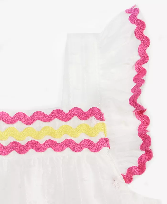 Верх: квадратный вырез; развевающиеся бретели с отделкой Ric-Rac; отделка Ric-Rac спереди; фактура в горошек