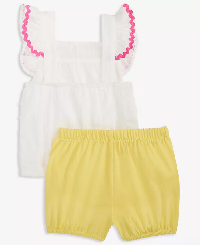 First Impressions представляет очаровательный образ для вашего малыша с этим комплектом из двух предметов из хлопка, включающим топ с отделкой в ​​виде рикотта и застежку-молнию и сочетающиеся с ним широкие шорты.