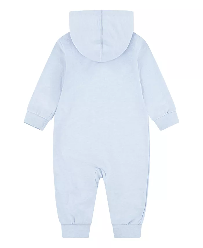 Симпатичный и уютный комбинезон с капюшоном от Nike из трикотажного полотна френч-терри оснащен застежкой-молнией спереди для быстрого надевания.