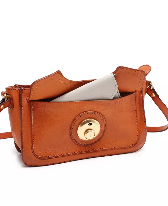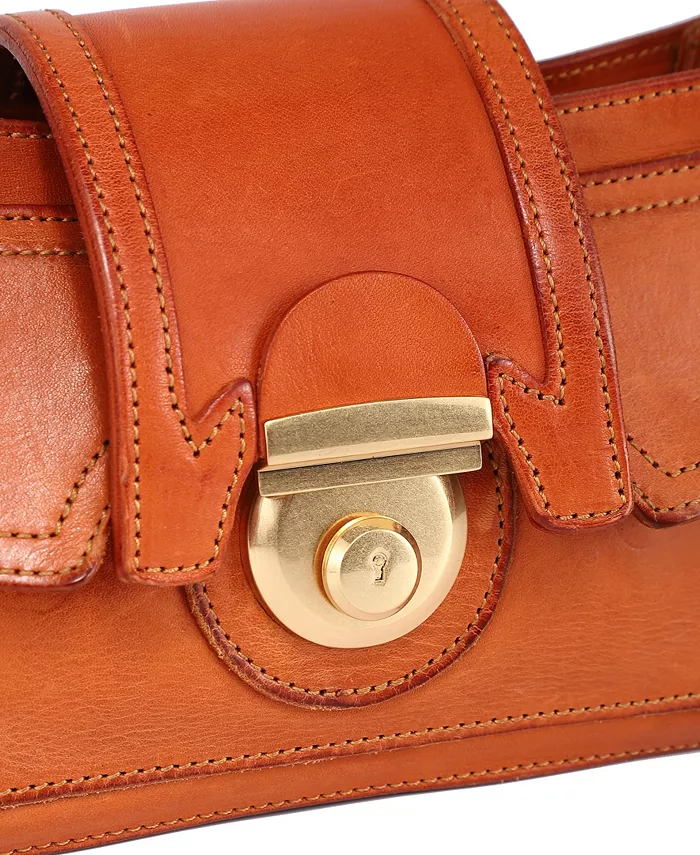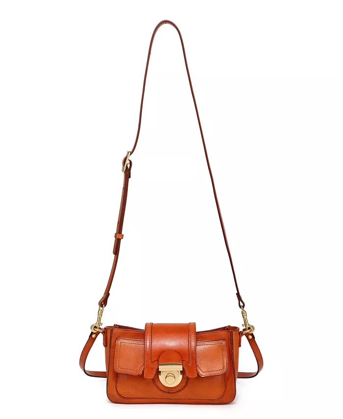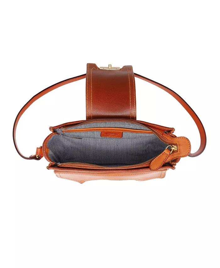 Размеры: 9"Д x 2,5"Ш x 5"В Высота ручки: 13,5" Длина ремешка: 20–24 дюйма, регулируемая Закрытие с помощью защелки Маленький Приблизительный вес: 1 фунт. 100% кожа, 100% хлопок Протирать начисто