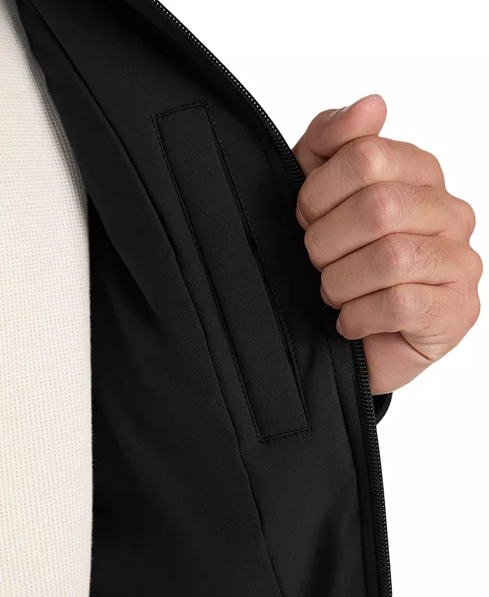 От GUESS, эта куртка-бомбер с легким наполнителем имеет брендинг на груди для фирменного дизайнерского вида. Эластичная ткань, которая является водонепроницаемой, добавляет как комфорт, так и универсальность.