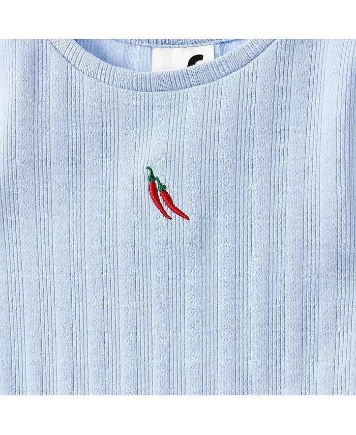 Вам понравится яркий всплеск цвета и милые принты на нашей футболке Raya Rib Baby Tee. Эта футболка с круглым вырезом легкая, мягкая и идеально подходит для детской площадки.