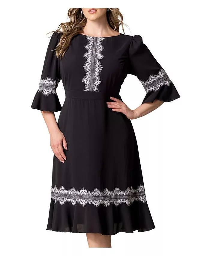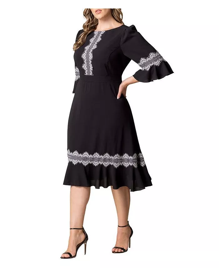 Платье коктейльное Plus Size Villa с кружевной отделкой Kiyonna, черный