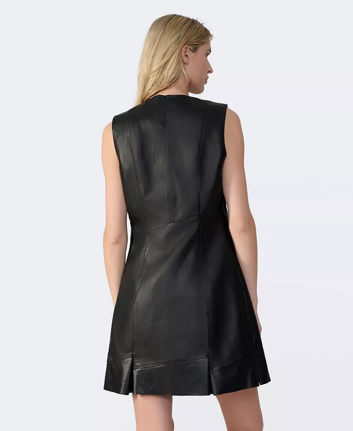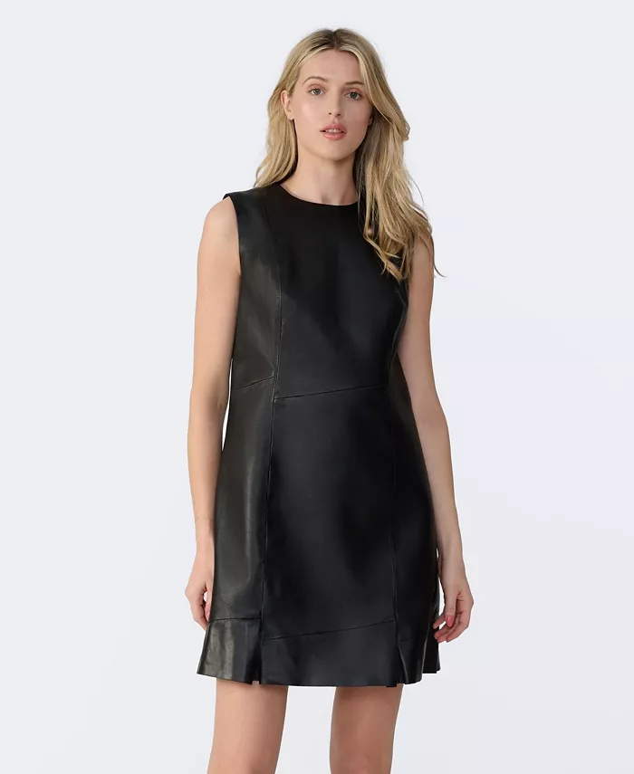 Шагните в весну в непринужденном силуэте. Это элегантное черное платье выполнено из мягкой кожи, обеспечивая элегантный баланс смелой изысканности и вневременного очарования.