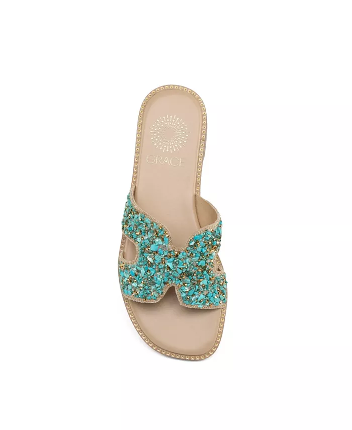 Сандалии MALPELO с ремешком H-образной формы, изготовленные из высококачественной кожи с эффектными деталями из акриловых камней, станут повседневным, но стильным выбором для прогулок в теплую погоду.