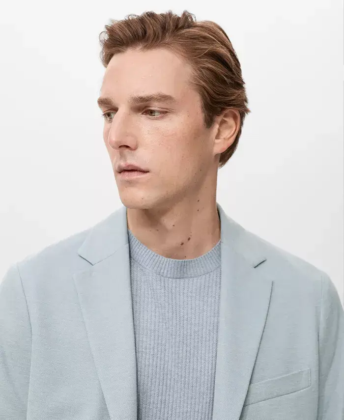 Мужской приталенный хлопковый блейзер Verner MANGO, синий