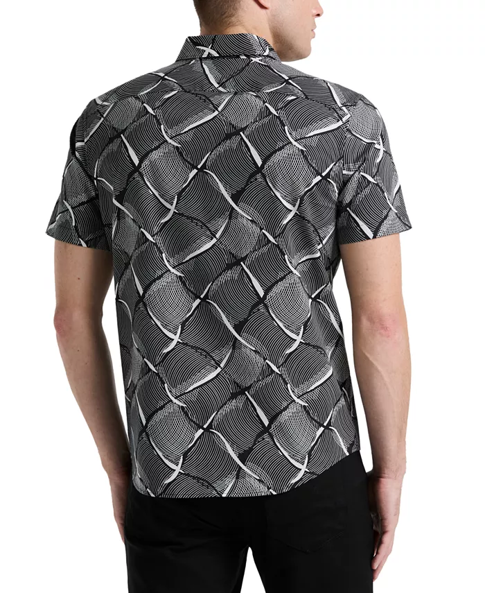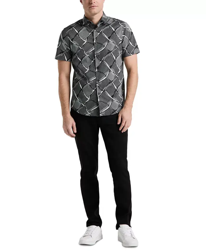 Эта рубашка прямого кроя от Perry Ellis, выполненная с фирменным узором в виде линий, готова стать ярким дополнением к вашей коллекции рубашек на пуговицах.