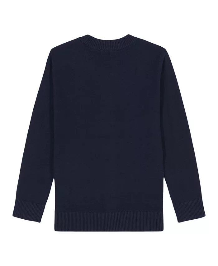 Ни один школьный гардероб не будет полным без уютного следующего слоя для прохладного утра. Этот однотонный кардиган от Nautica, выполненный из пряжи 12 калибра с добавлением хлопка, отвечает всем требованиям, благодаря полностью застегивающейся на пуговицы передней части и дизайну в виде кос.