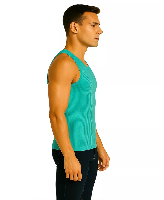 Мужские ребристые майки — универсальное и удобное дополнение к вашему гардеробу, идеально подходящее для ношения в качестве нижнего белья, в спортзале или просто для отдыха. Разработаны с современным кроем, обеспечивающим мягкое, гладкое ощущение на коже. Ребристая трикотажная текстура и вырез горловины А-силуэта обеспечивают классический, привлекательный вид, а двойная строчка по низу добавляет дополнительную прочность для длительного ношения.