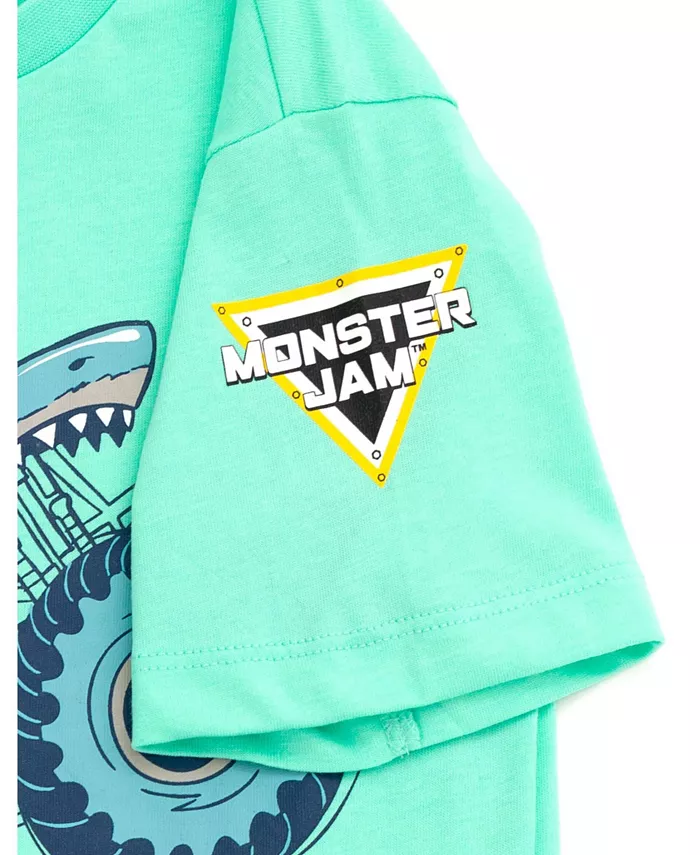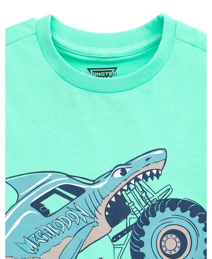 Футболка с короткими рукавами и принтом Megalodon для маленьких мальчиков с официальной лицензией Monster Jam