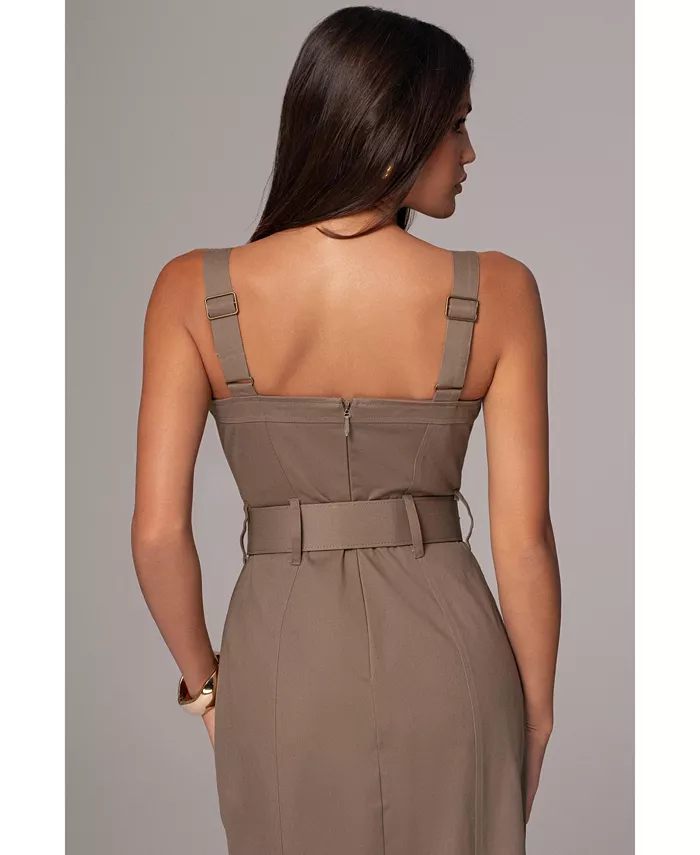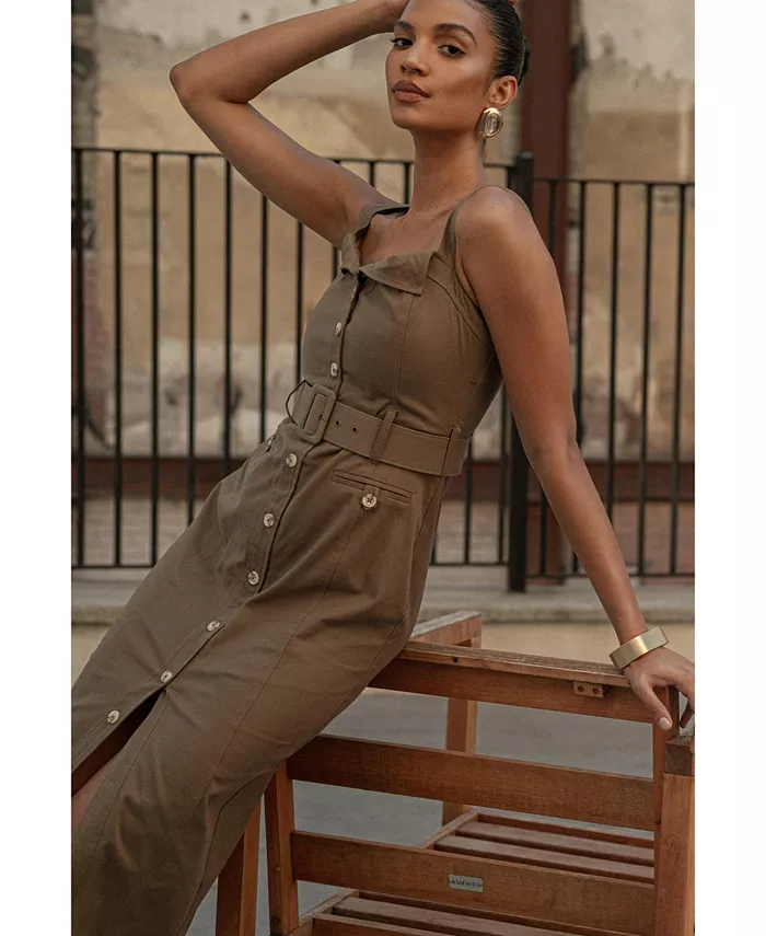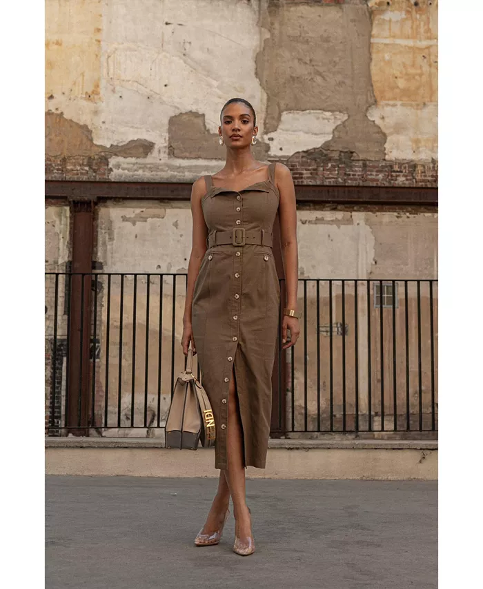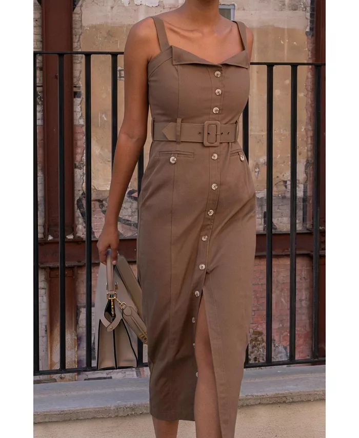 Погрузитесь в нейтральные цвета осени с нашим платьем Forever Summer Belted Dress. Это платье миди демонстрирует дизайн с имитацией пуговиц спереди, регулируемые бретели, шлевки для ремня, подчеркивающие талию, разрез по центру и соответствующий пояс с квадратной пряжкой. Дополнено имитацией прорезных карманов и застежкой-молнией сзади.