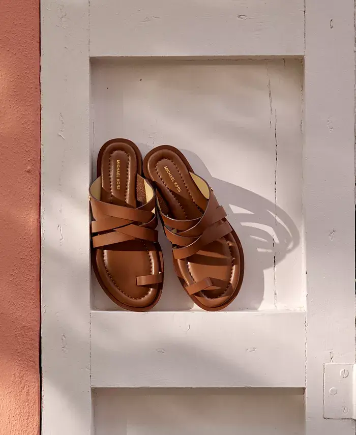 Перекрещивающиеся ремешки и детали с кольцом на большом пальце создают очаровательную привлекательность в босоножках Nora от MICHAEL Michael Kors.