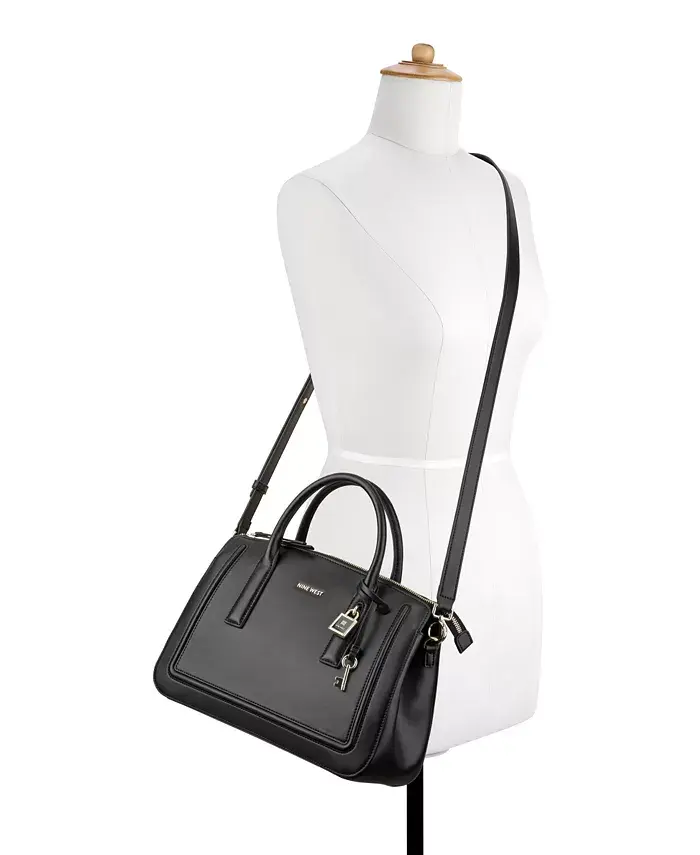Сумка-портфель Nine West Tenely с несколькими отделениями из мягчайшего маслянистого материала. Верхняя молния с магнитным отделением и внутренними карманами для организации. Специальный брендинг с покрытием из золота и эмали. Идеальная сумка для работы или для любого случая, чтобы быть стильной. Имеет украшение в виде замка и ключа для роскошного стиля.