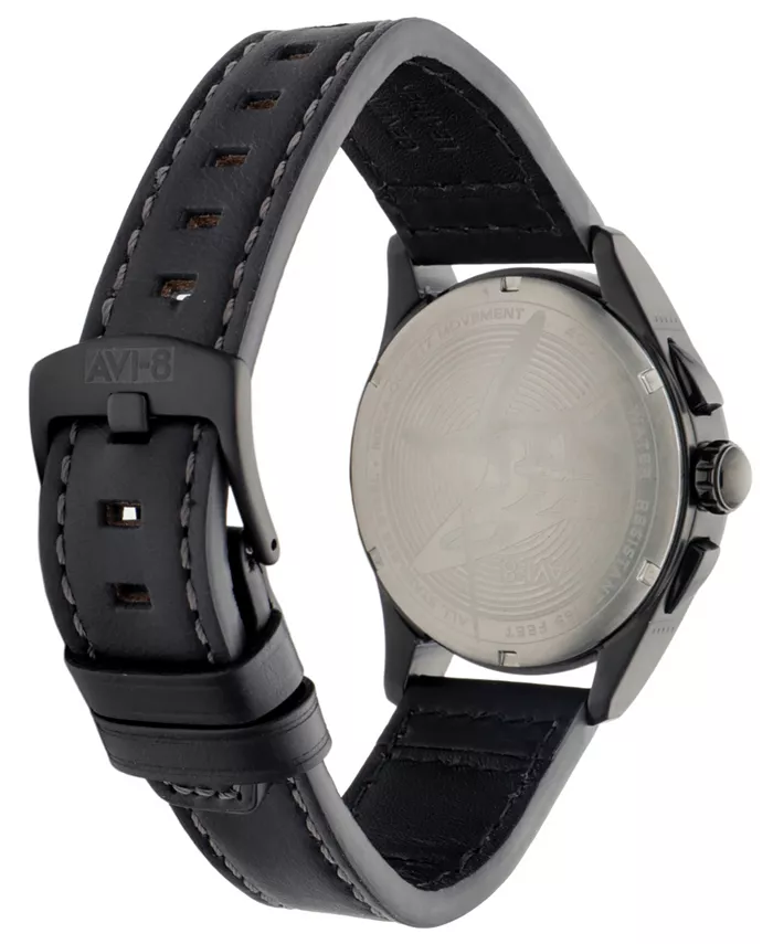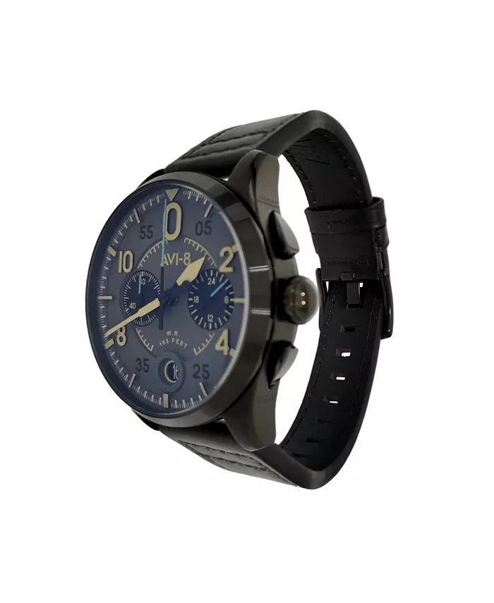 Мужские часы Spitfire Lock Chronograph с черным кожаным ремешком, 42 мм AVI-8