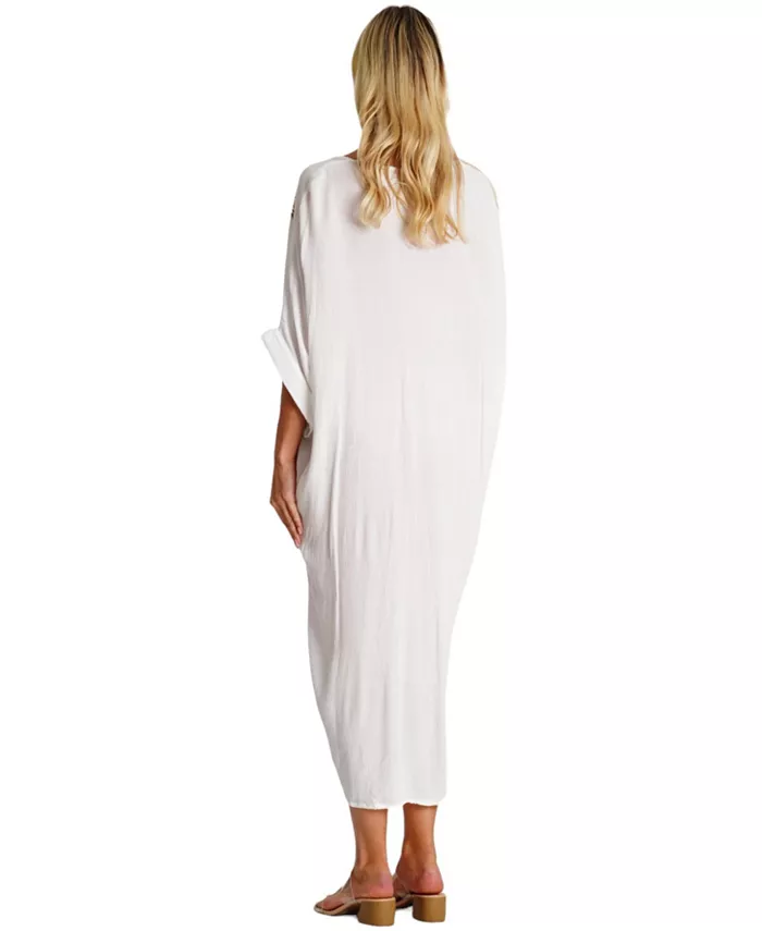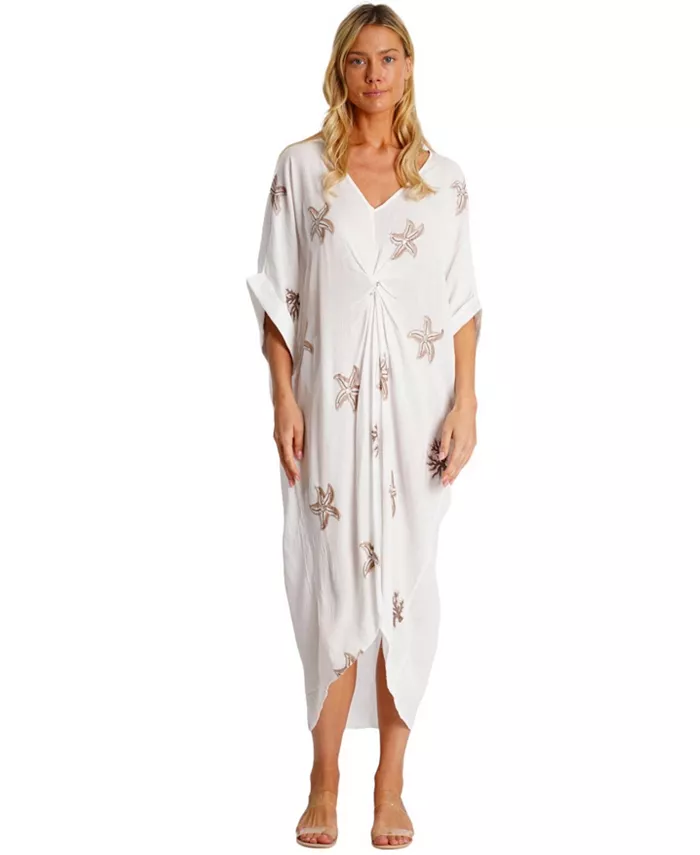 Вдохновленная красотой моря, эта воздушная белая макси-плащаница имеет нежный принт с морскими звездами, привлекательный V-образный вырез и шикарный дизайн с запахом. С рукавами 3/4 это идеальное сочетание прибрежной элегантности и непринужденного стиля.