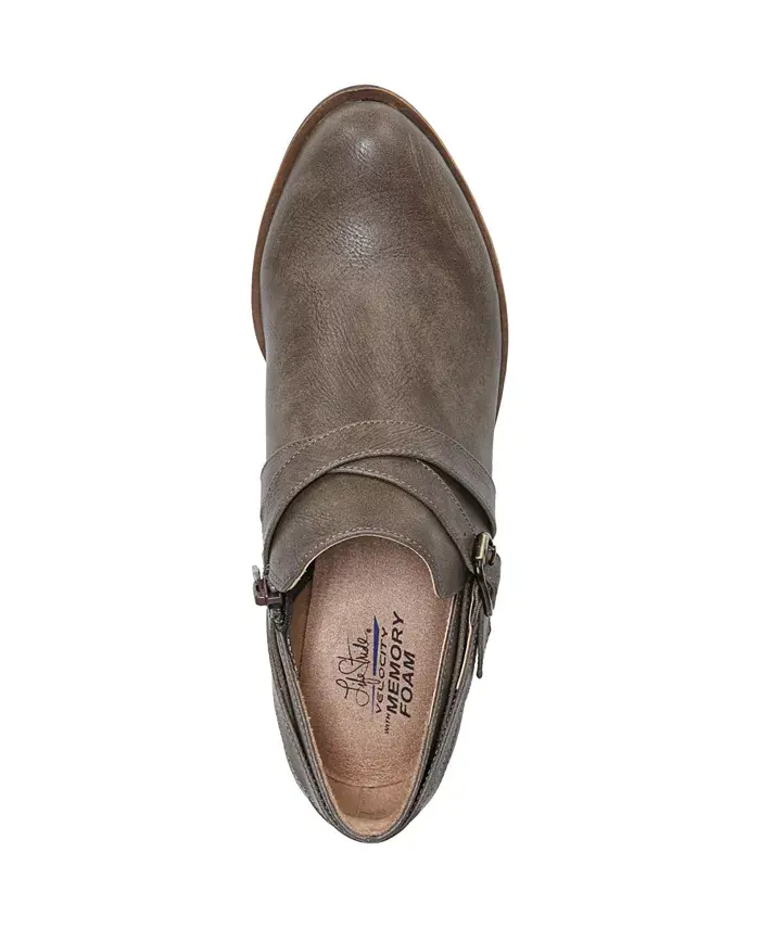Shootie со всеми нужными деталями. Наденьте этот ультракомфортный силуэт. Верх из искусственной кожи или микрозамши с круглым носком, без застежки и обхватывающий ремешок с металлической пряжкой. Пакет Soft System обеспечивает поддержку, гибкость и амортизацию в течение всего дня. Мягкий слой Velocity с Memory Foam обнимает вашу ногу. Подошва с цепкостью обеспечивает вам дополнительную устойчивость. Каблук Just Right Height 1,5 дюйма.