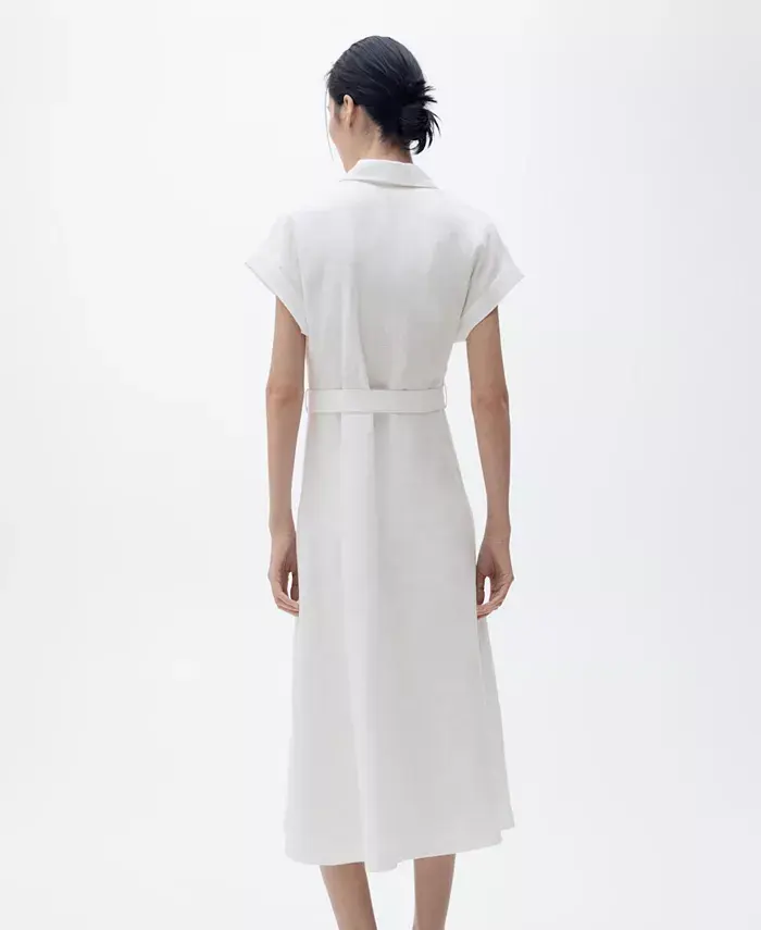 Женское льняное платье-рубашка MANGO, белый