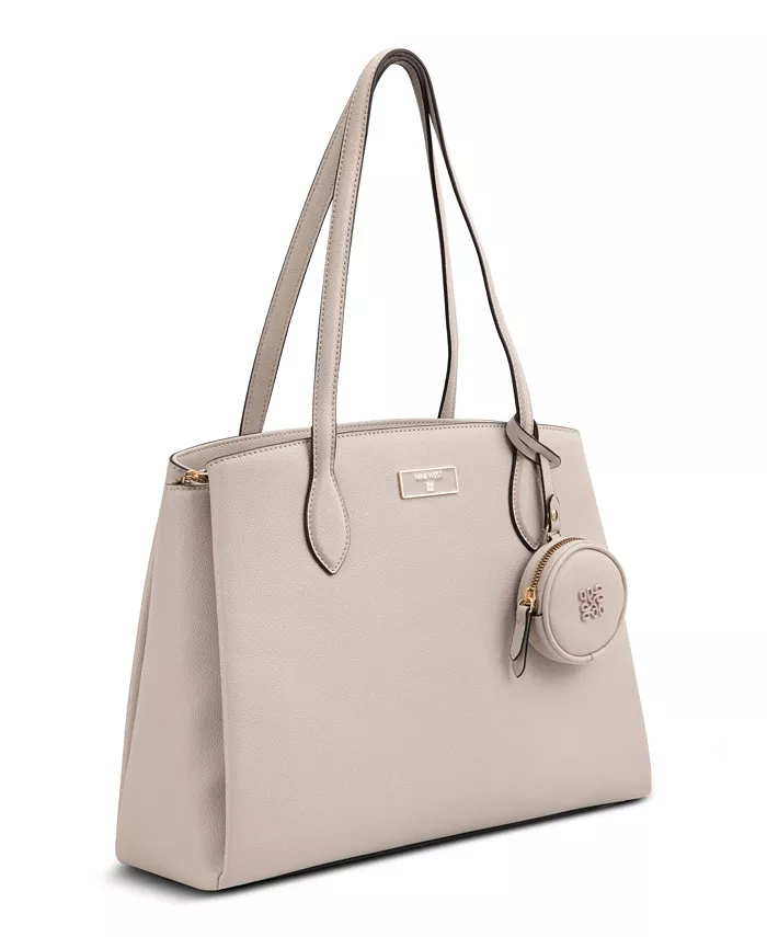 Сумка-тоут Nine West Designer Mary с силуэтом «шоппер» из материала с микрогалечником. Застежка-молния сверху с 2 магнитными отделениями и внутренними карманами-органайзерами. Специальный брендинг с покрытием из золота и эмали. Идеальная сумка для работы.
