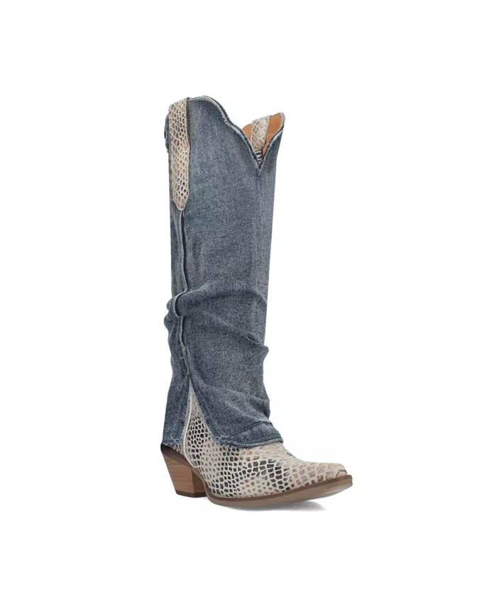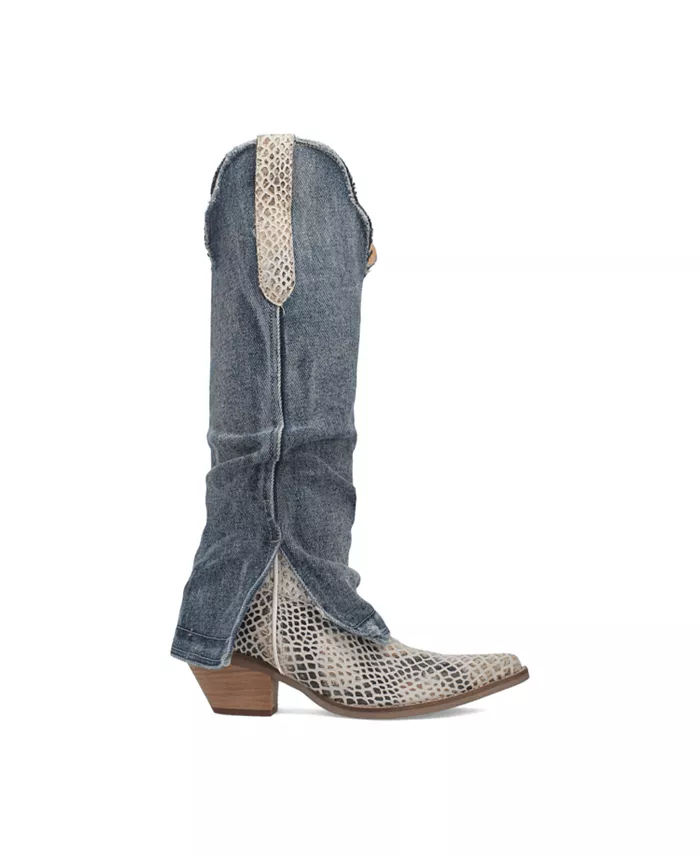 Привлеките внимание модными ботинками Shabby leather, которые обязательно привлекут внимание от Dingo1969. С очаровательным принтом ящерицы вдоль мыска и ремешков для экзотического штриха. Еще больше поднимая стиль, джинсовый дизайн с отворотом на голенище придает ботинку роскошный и свирепый вид. Высота 16 дюймов, гладкий зауженный носок и каблук 2 1/2 дюйма для элегантного силуэта.