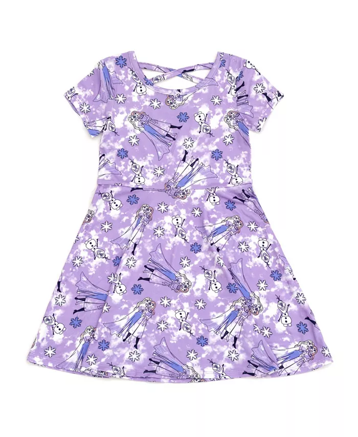 Официально лицензированное платье с короткими рукавами для девочек Disney Elsa Princess Anna Olaf Сплошной принт. Воротник-лодочка в рубчик. Мягкий рисунок, нанесенный вручную. Модное платье в стиле скейтборда. Перекрещенная спинка. Застежка на застежке. Прочная и долговечная детская одежда, которая позволит вашим детям оставаться детьми с забавными рисунками персонажей и удобной посадкой. Стильная молодежная одежда из мягкого материала, безопасного для кожи вашего ребенка, симпатичная одежда для девочек, модная одежда на весну и лето, необходимые вещи для повседневной носки. Идеально подходит в качестве подарка на день рождения, рождественского подарка, на каждый день, для игр на свежем воздухе, отпуска и теплых летних дней. Вкусный джерси, 95% полиэстер / 5% спандекс Можно стирать в стиральной машине