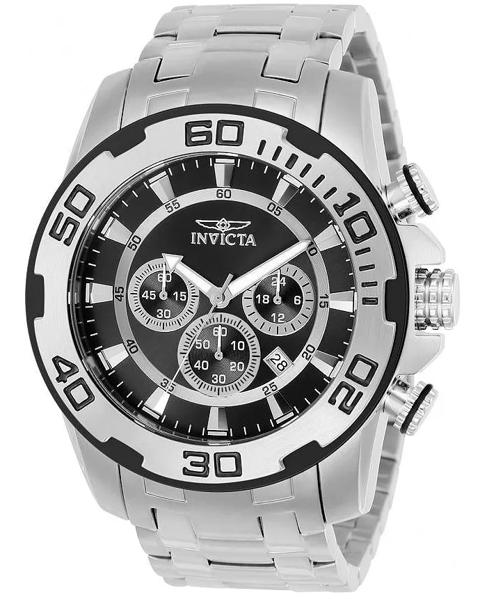 Мужские часы Pro Diver Quartz Chronograph 22318 с черным циферблатом Invicta, серебряный
