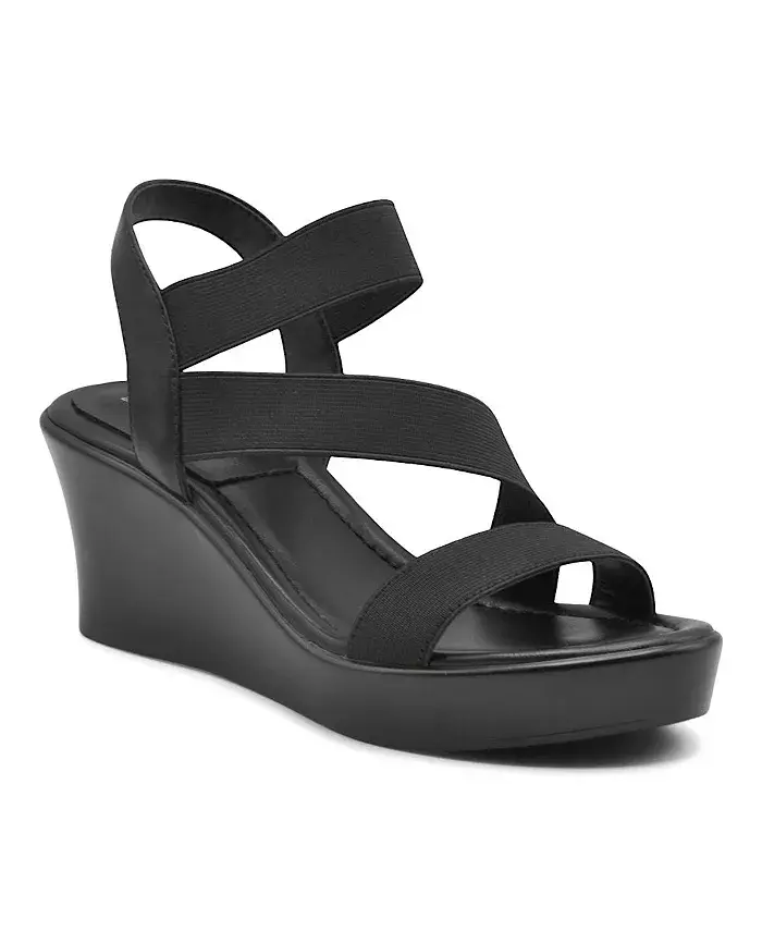 Эластичные ремешки дополняют эту практичную босоножку на каблуке.