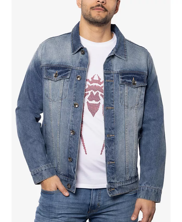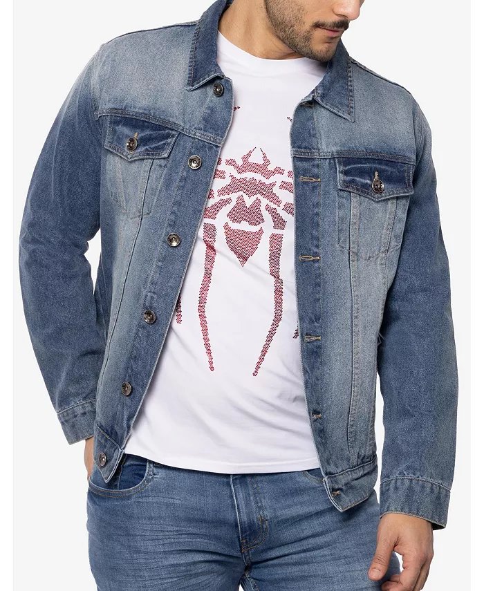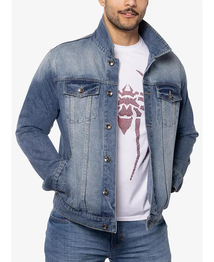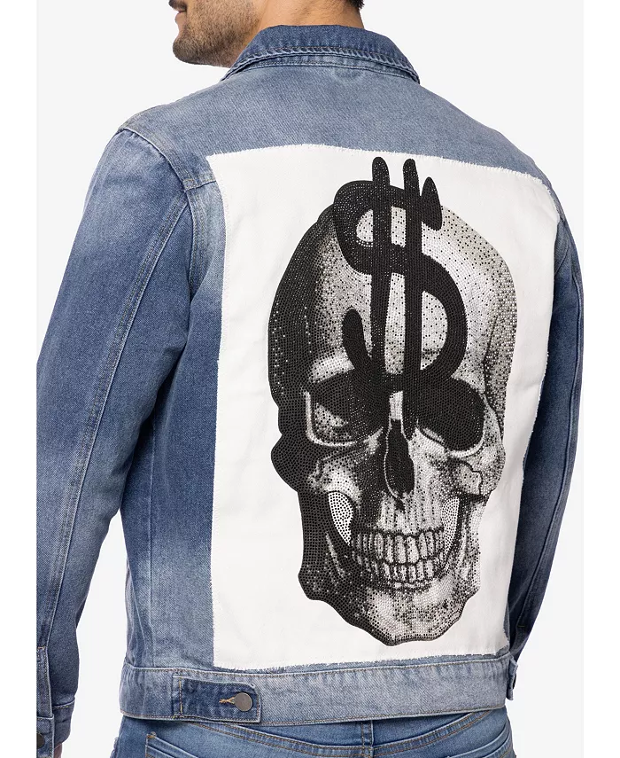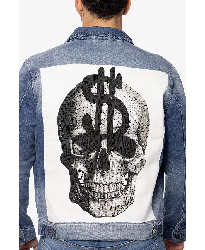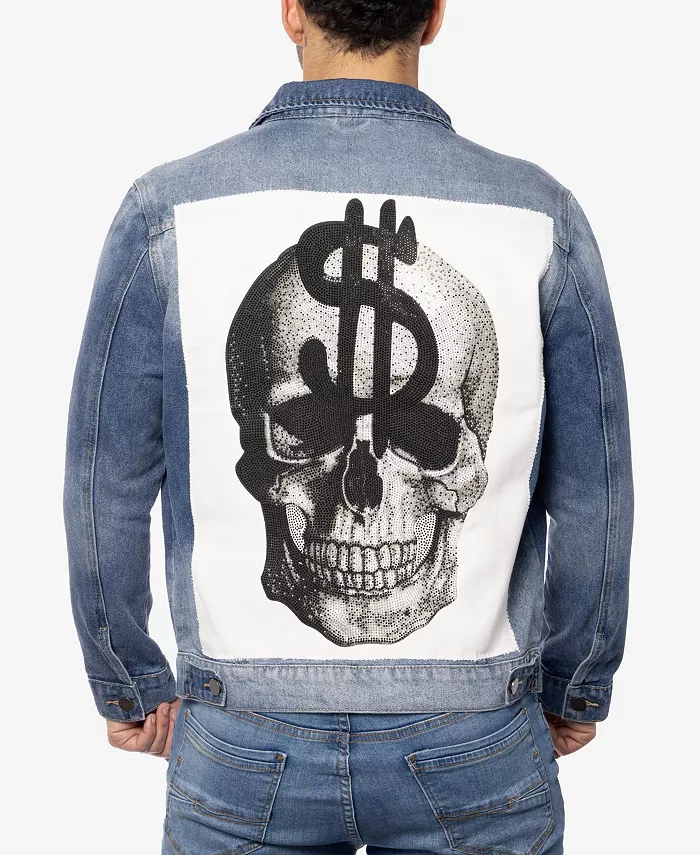Мужская джинсовая куртка с принтом и стразами SPRING + MERCER, синий