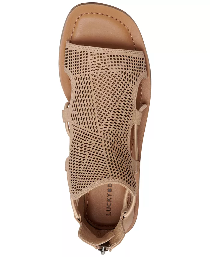 Lucky Brand дополняет профиль, вдохновленный гладиаторской обувью, перфорированными узорами, создавая сандалии Bartega, которые отлично подойдут для теплой погоды.
