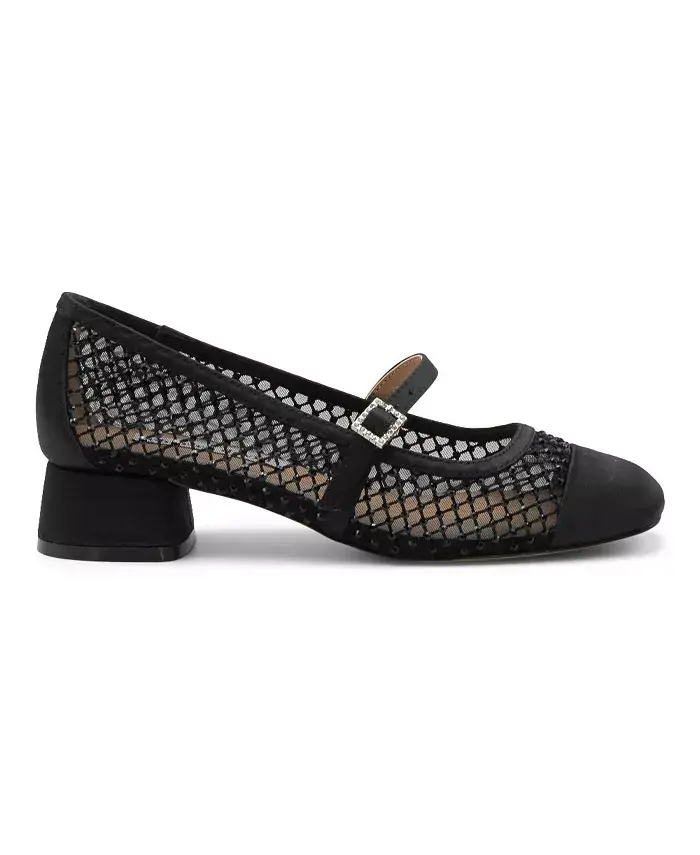 Туфли на низком каблуке с сеткой и камнями по всей поверхности, с глянцевым носком и ремешком «Мэри Джейн» для надежной фиксации.