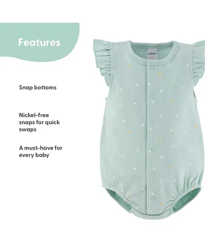 Разработанные с учетом потребностей занятых родителей, они имеют конструкцию без этикеток для удобства и кнопки без содержания никеля для легкой смены одежды и быстрой смены подгузников.