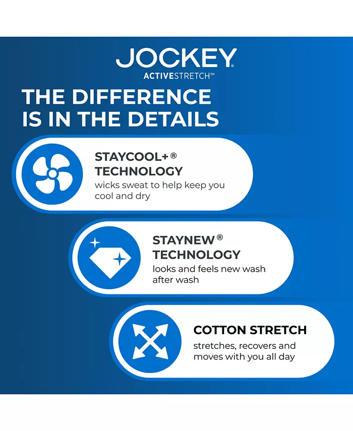 Технология StayNew от Jockey помогает трусам-боксерам ActiveStretch выглядеть и ощущаться как новые после каждой стирки.