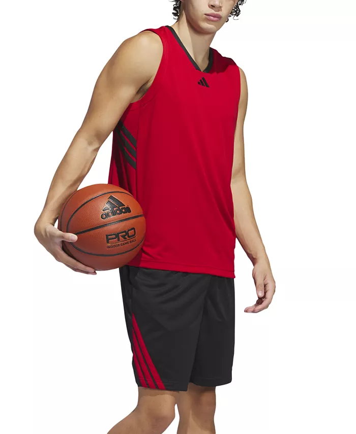 Классический комфорт для площадки. Эта баскетбольная майка adidas с широкими проймами и V-образным вырезом обеспечивает полную свободу движений при каждом броске. Логотип 3 Bar на груди и 3 полоски по бокам завершают культовый образ.