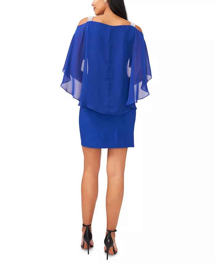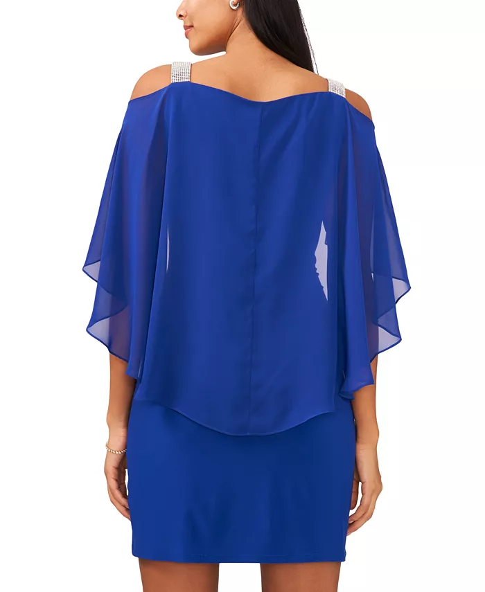 Ремешки со стразами создают элегантный выход в этом шикарном шифоновом платье. Затем MSK прикрывает вас струящейся отделкой-накидкой.