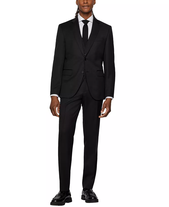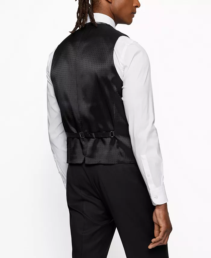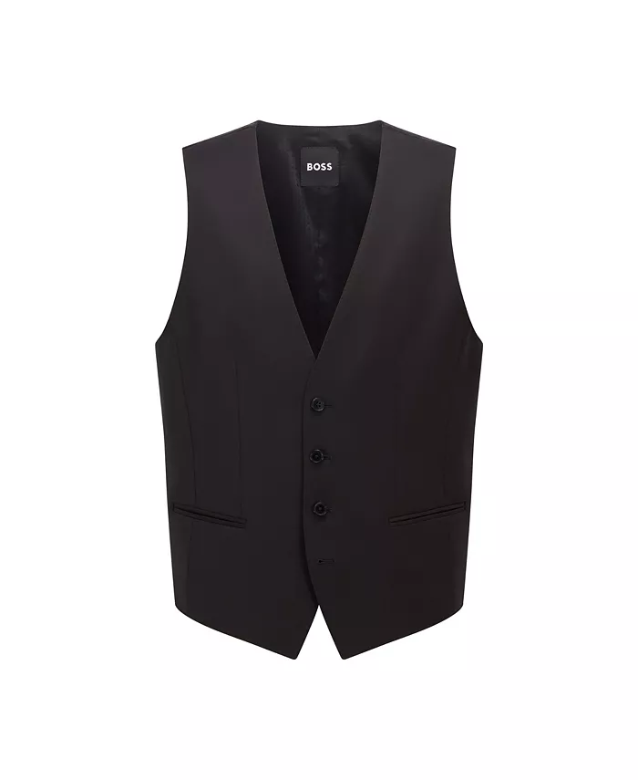 Изысканный жилет от BOSS menswear. Этот однобортный жилет с подкладкой из материала с логотипом выполнен из натуральной шерстяной саржи, чтобы легко сочетаться с соответствующими брюками и пиджаком.
