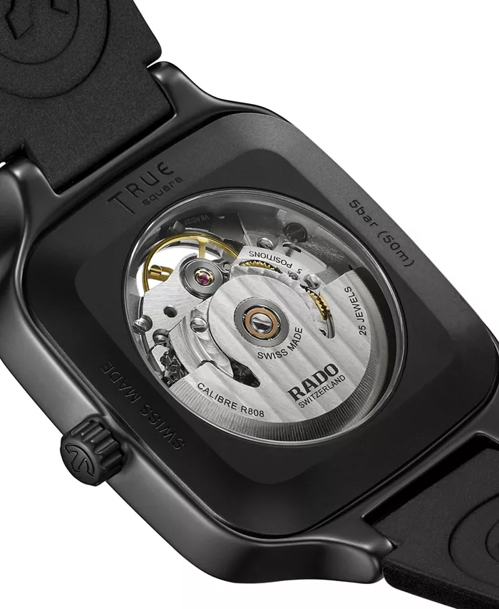 Унисекс-часы Swiss Automatic True Square Skeleton с черным резиновым ремешком, 38 мм Rado