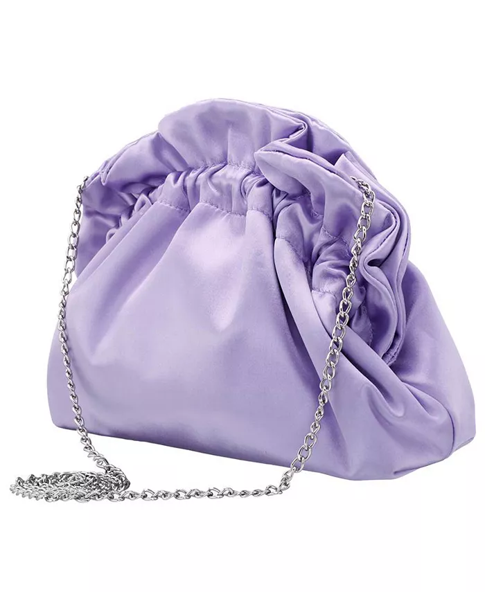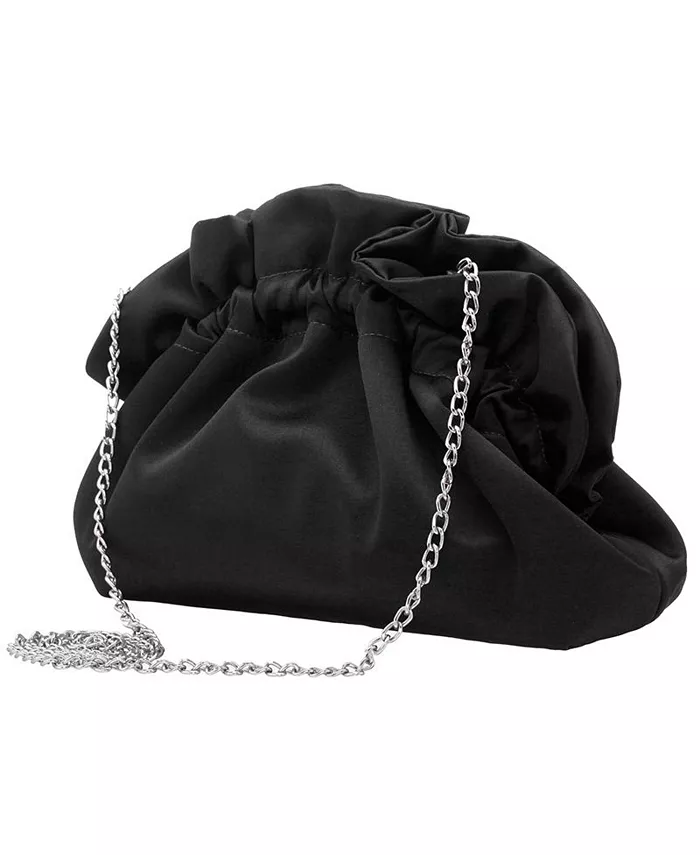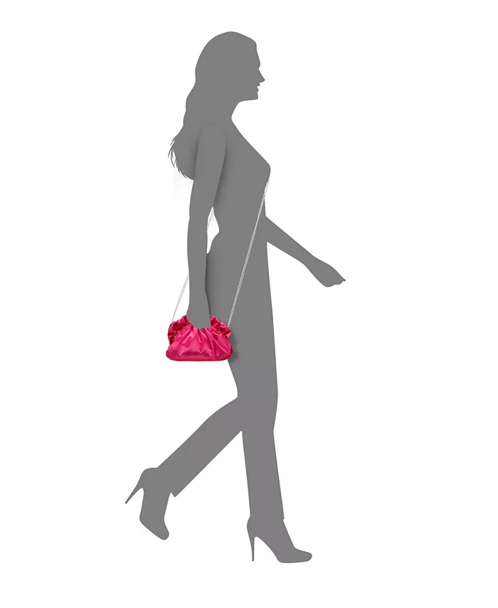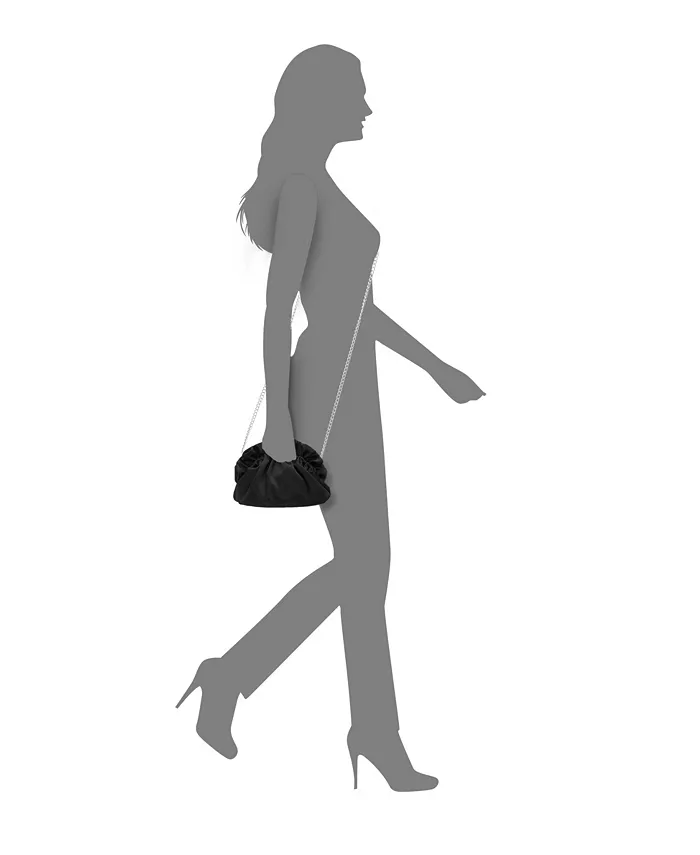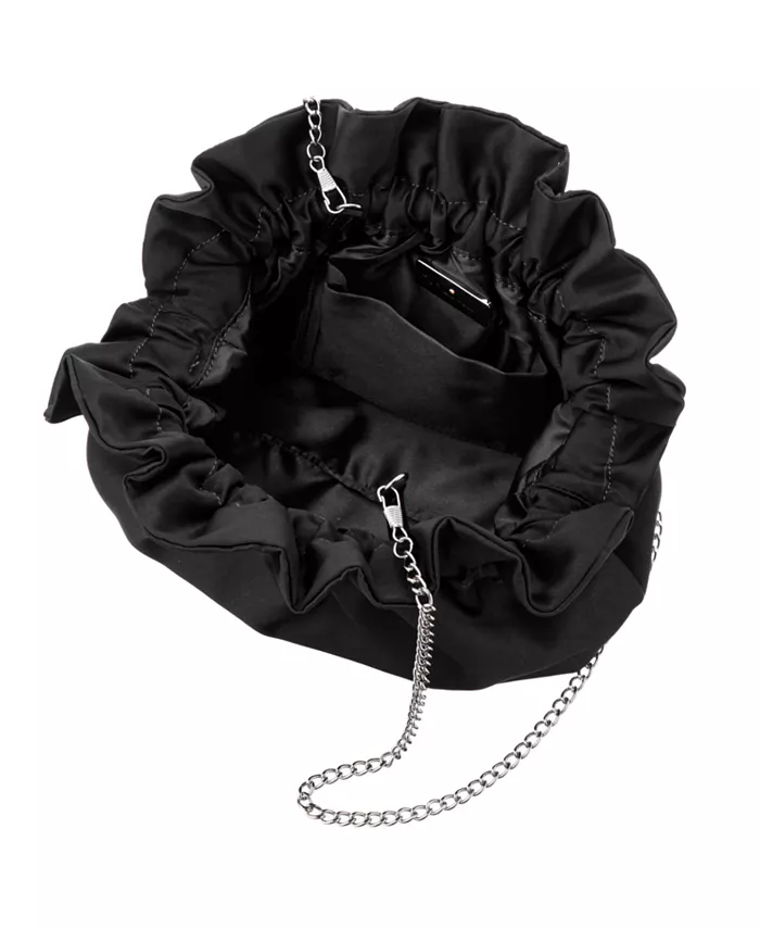 Эта атласная сумка-мешок с оборками станет идеальным аксессуаром для любого повседневного или вечернего наряда. В нее поместятся все ваши личные вещи, а также она оснащена цепочкой, чтобы освободить руки.