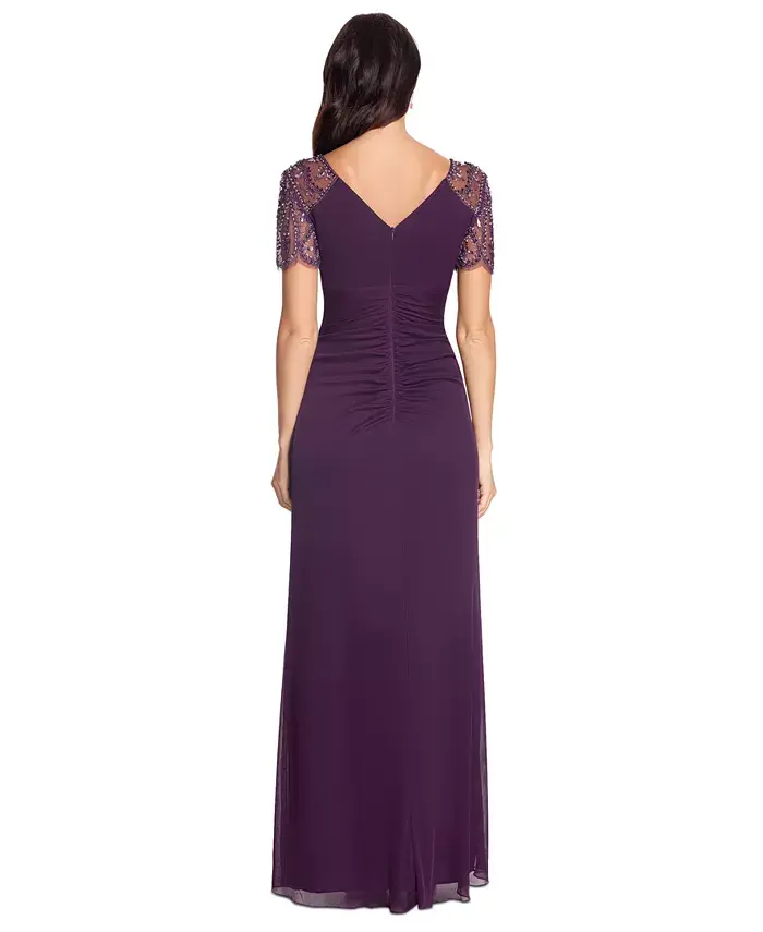 Платье с вышитыми бисером рукавами XSCAPE, фиолетовый