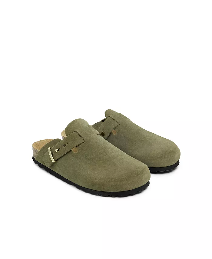 Почувствуйте комфорт в этих сабо с современным ремешком с заклепками и универсальной замшей, которые идеально подойдут для повседневного образа.